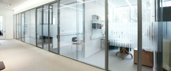 Стеклянные противопожарные перегородки могут изготавливаться как в полностью остекленном варианте, так и в частично остекленном исполнении. Основное предназначение таких конструкций — это разделение общего помещения на несколько отдельных рабочих зон. При этом преследуется несколько целей: